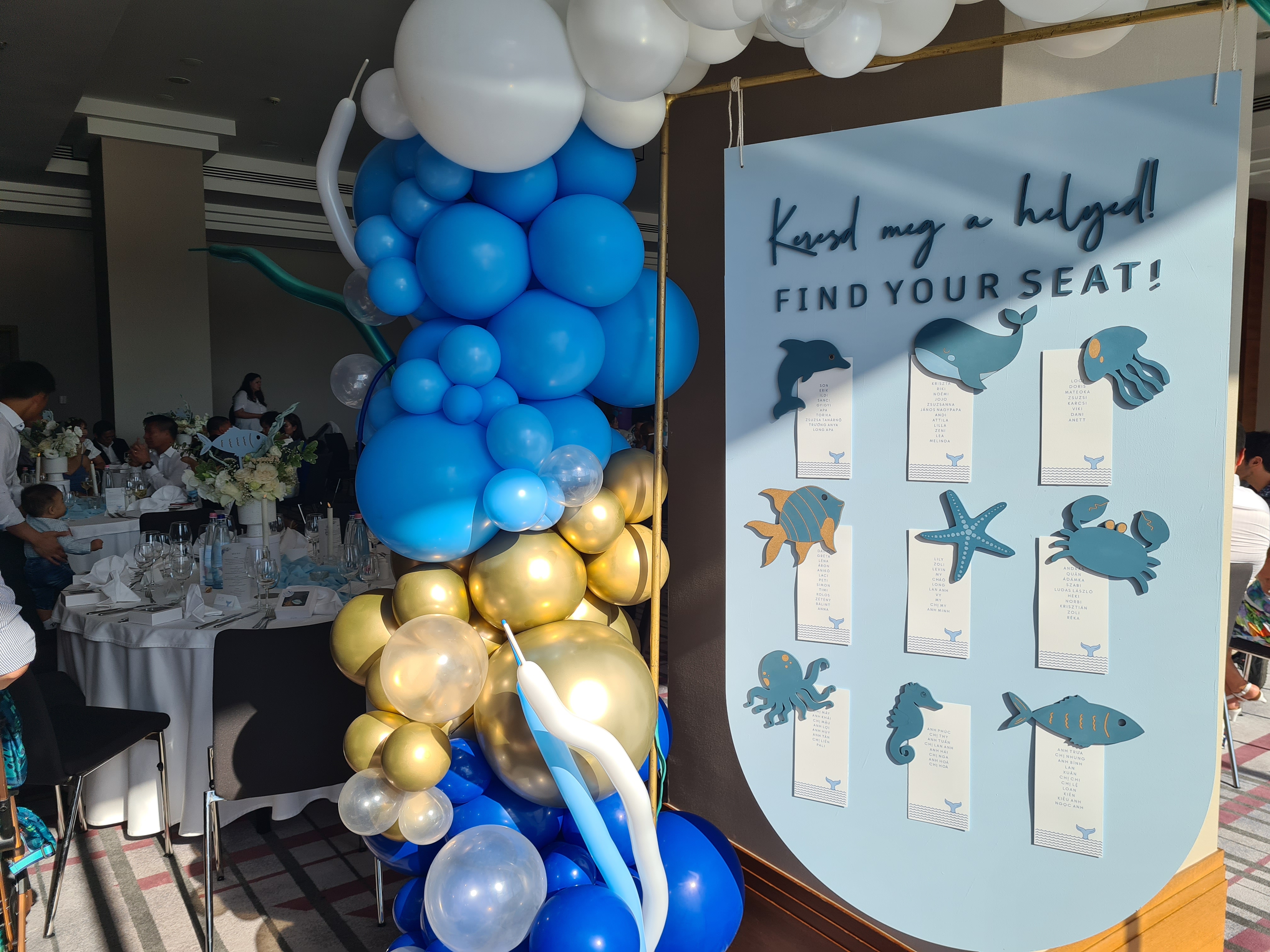 Riki első szülinapját az elmúlt hétvégén két felvonásban ünnepeltük meg. Szombaton egy ötcsillagos szállodában 100 fős fogadás keretében, majd vasárnap szűkebb családi körben Kriszta szüleinél. Riki apjának túl sok pénze van ahhoz, hogy ne jutna eszébe olyat rendezni, mint az a szombati buli volt, nekünk meg nem tisztünk beleszólni, különben is a tehetségének és szorgalmas munkájának köszönheti a sok pénzét, szóval nincs ezzel baj csak na... 100 fős fogadás... egy egyévesnek... Szerintünk abszurd. Ettől függetlenül örülünk, hogy ilyet is láttunk. :)
